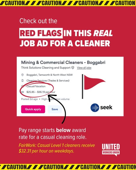 (Low wages are bad enough without being swindled into the bargain, Source: UWU Facebook page)