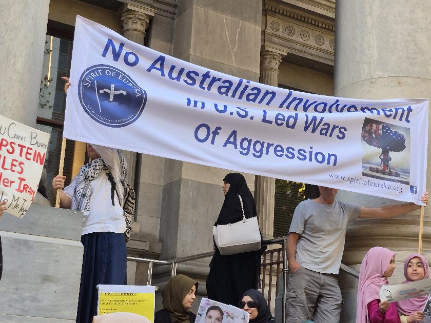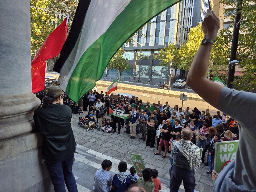 Around 200 people gathered at Parliament House last night to condemn the US-Israeli aggression against Iran.