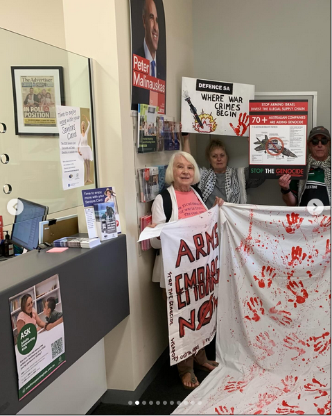 On 4th March, anti-war protestors from Disrupt Arms Traders, IPAN-SA (Independent & Peaceful Australia Network - South Australia), and PACOA (Port Adelaide Community Opposes AUKUS) took their no-war message to the electoral offices of Malinauskas and Hood.