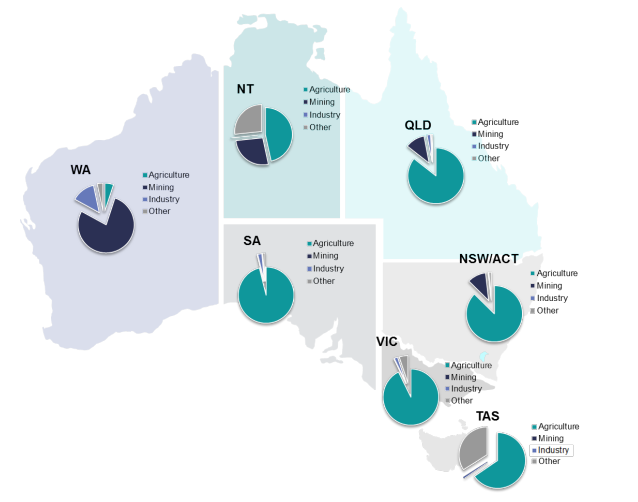 Looking at foreign ownership of our water on a state-by-state basis, foreign interests own 10% of water entitlements in the NSW-ACT, 19.2% of Queensland’s water, and about 7% of Victoria’s water. Foreign interests own almost 13% of the Murray-Darling Basin’s water.
